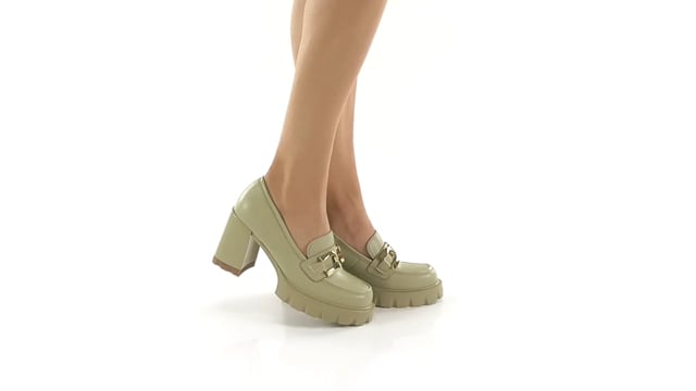 Γυναικεία μοκασίνια Gianna Kazakou από δερμα συνθετικο με συνθετική φόδρα, συνθετική σόλα και τακούνι 9 cm. Διατίθεται σε χρώμα Φυστικί.