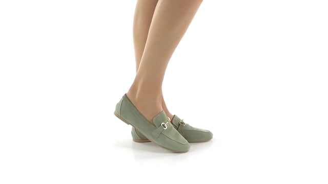 Γυναικεία μοκασίνια Gianna Kazakou από καστορι χωρίς φόδρα με συνθετική σόλα. Διατίθεται σε χρώμα Σιελ και Βεραμάν.
