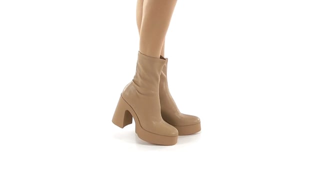 Γυναικεία μποτάκια Corina από δερμα συνθετικο με υφασμάτινη φόδρα, συνθετική σόλα και τακούνι 11 cm. Διατίθεται σε χρώμα Camel.
