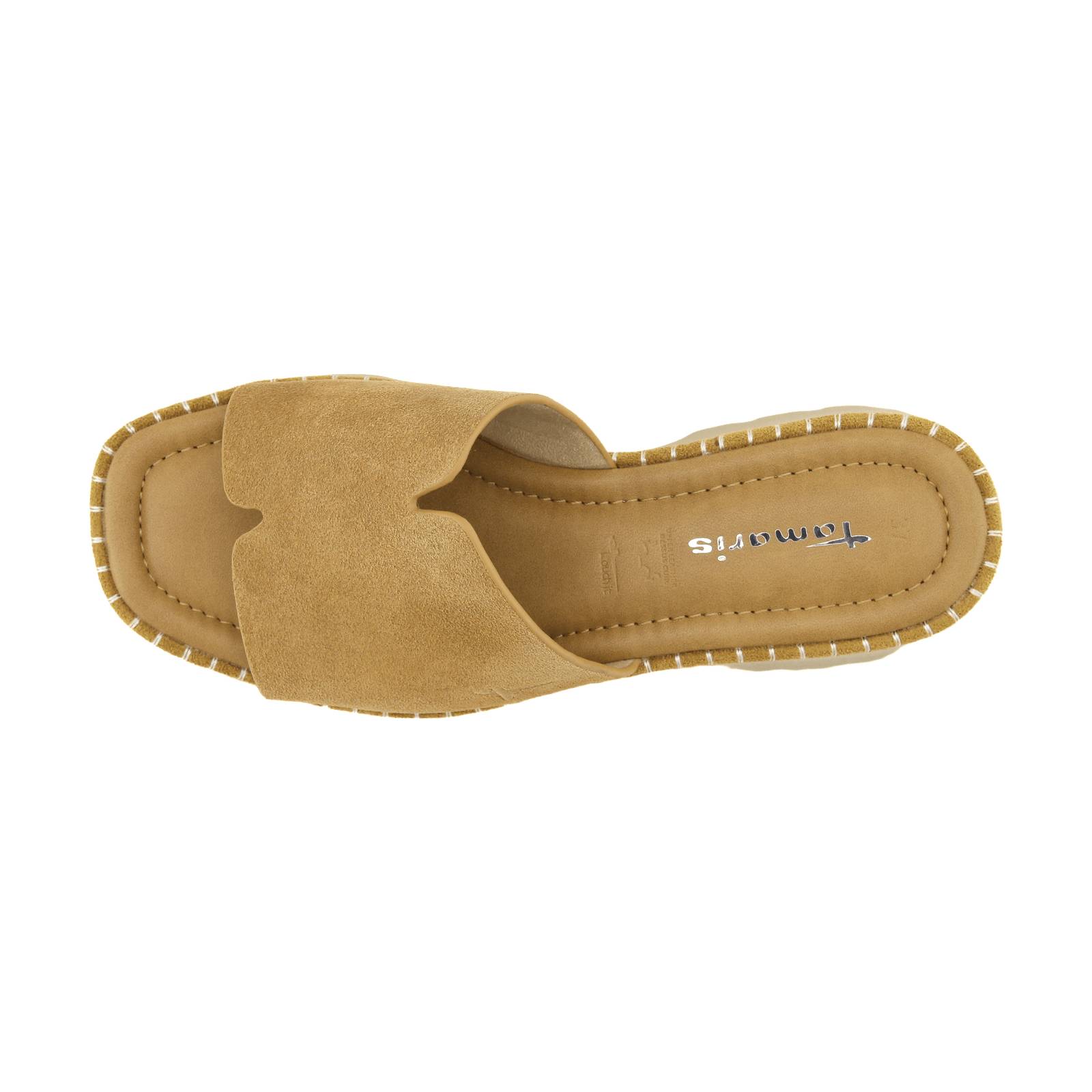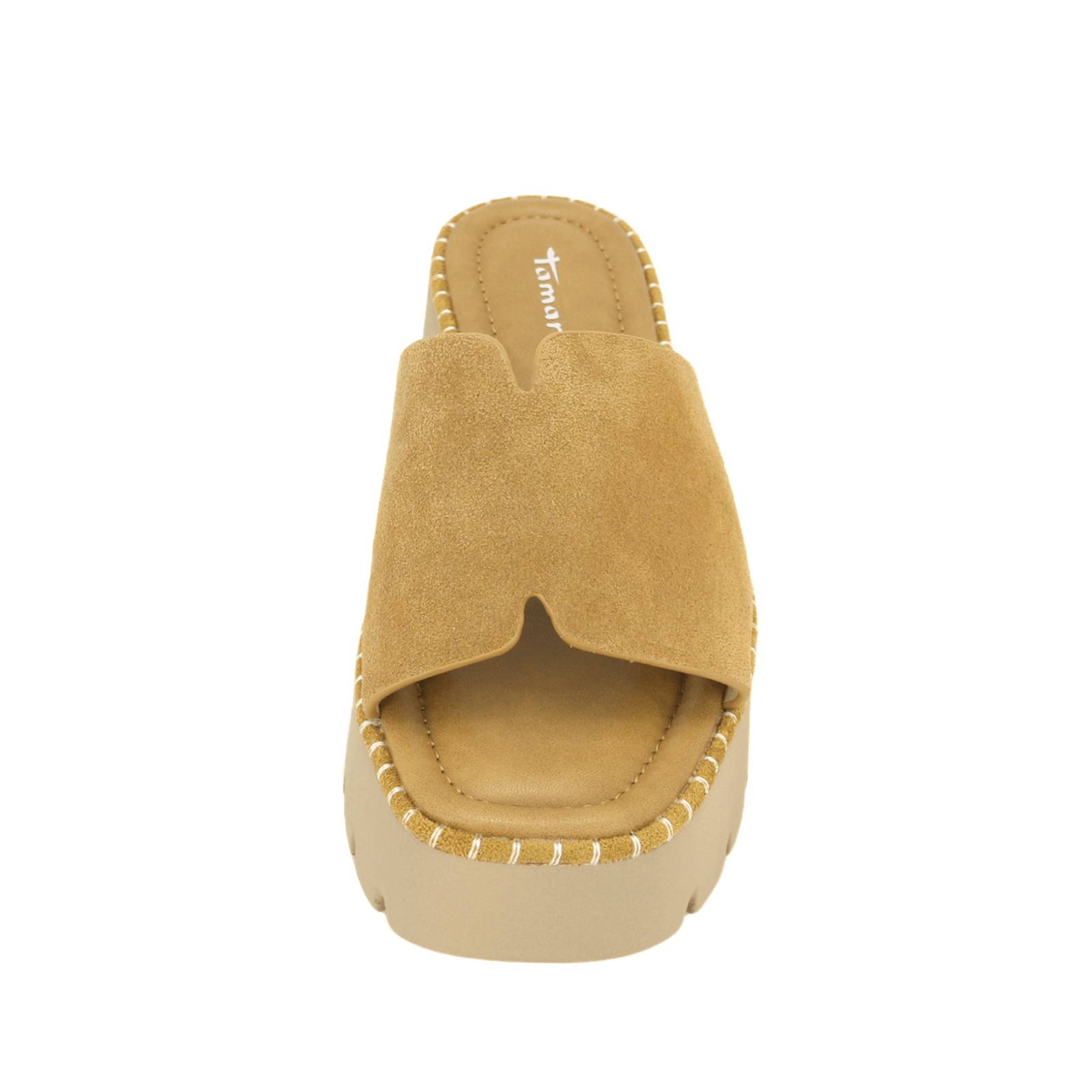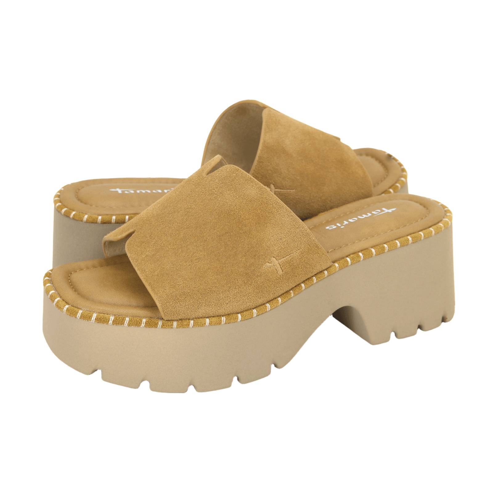 Γυναικείες πλατφόρμες Tamaris από καστορι με υφασμάτινη φόδρα, συνθετική σόλα και τακούνι 6½ cm. Διατίθεται σε χρώμα Μπεζ και Camel.