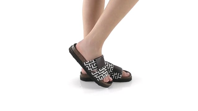 Γυναικείες σαγιονάρες Mira από ύφασμα και δέρμα με δερμάτινη φόδρα και συνθετική σόλα. Διατίθεται σε χρώμα Μαύρο-Λευκό.